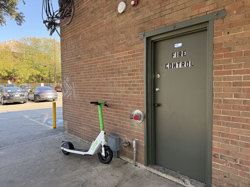If one of the HVAC air handlers has detected smoke from a fire (or disco fog, or smoke from the RTU heaters being turned on for the first time in a while), its light on the corresponding keyed reset switch in the back hallway will be RED.