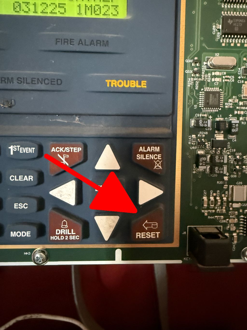 - Next, you’ll need to go to the Sprinkler Control Room and initiate the FIRE ALARM *** RESET *** PROCEDURE below.